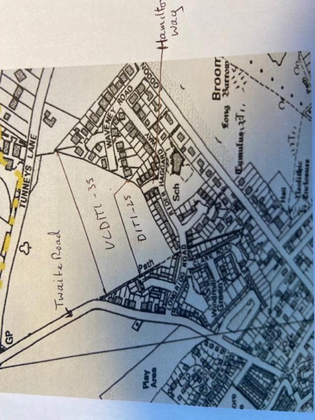 Ditchingham Parish Council OBJECTS to further houses being built north of Rider Haggard Way, if the only exit for these 35 houses is through the present development and Hamilton Way. Highways approval for the Hamilton Way exit as the only exit for 55 houses has not been supplied. Further development on this site should provide an access via Thwaite Road and Waveney Road, which would reduce traffic using Hamilton Road and the village. Also reducing the risk traffic accidents near the Primary School during term times (see map attached).
